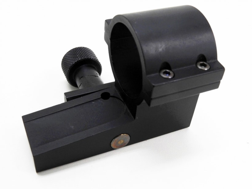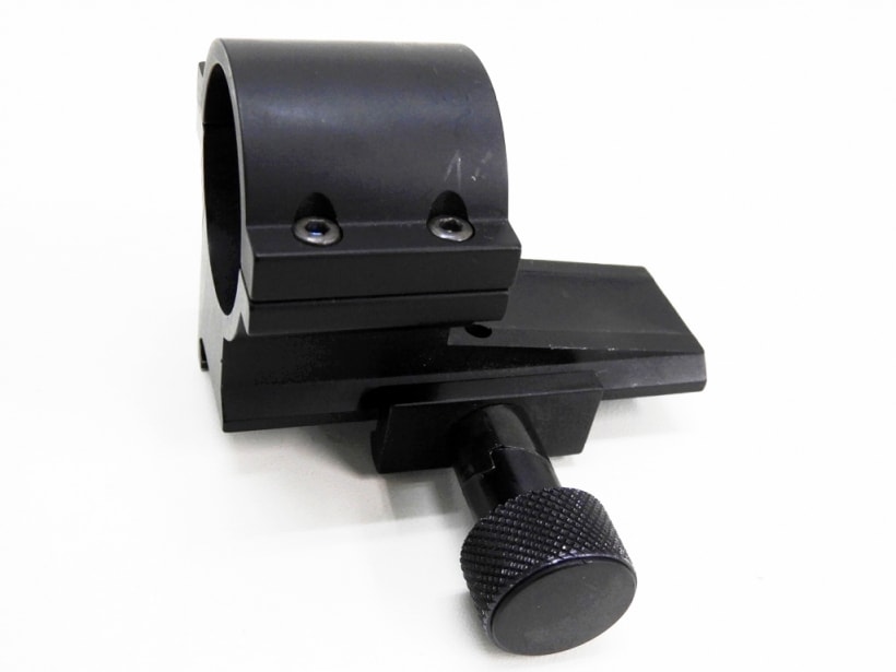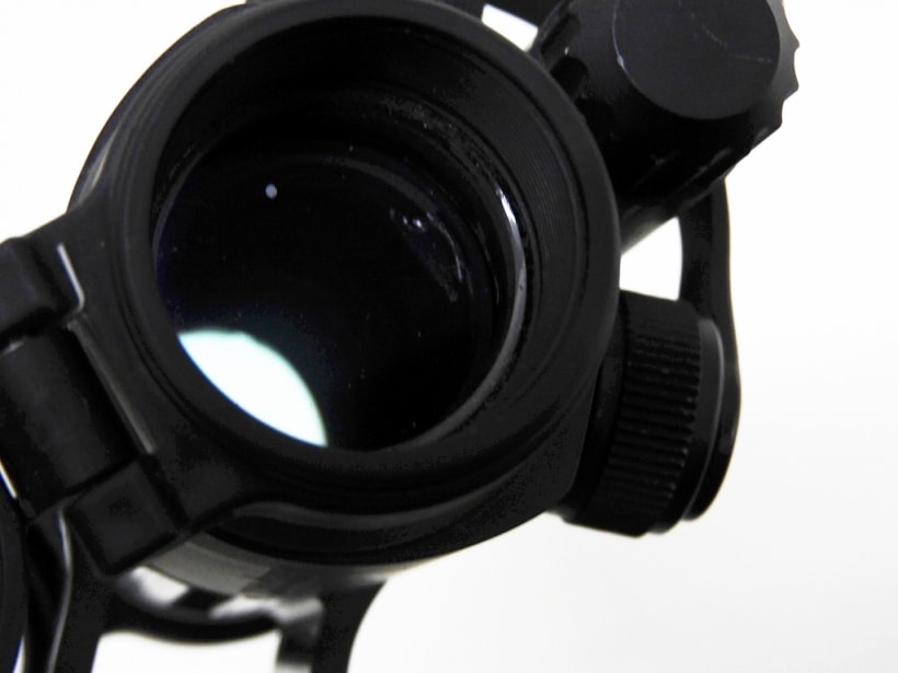 米軍に正式採用されているAIMPOINT社製ダットサイトCOMP M2。実物。 M2シリーズは同社の製作したCOMP MILITARYモデルの改良型にあたるモデルで、バッテリー稼働時間の大幅な延長に成功している。ダットサイトとしては非常にポピュラーなモデル。