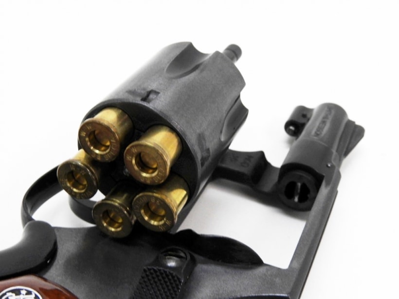 コクサイ製メガヘビーウエイトM36、2インチブラックモデル。発火カート×5発、ダミーカート×5発付属。
