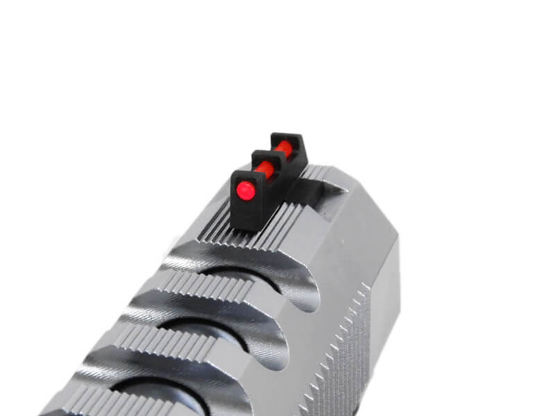 ノーマルのハイキャパより約20%軽量化されたスライド、集光フロントサイト、スライドフロントのセレーションなど、本気で勝利するための銃に仕上がっている。