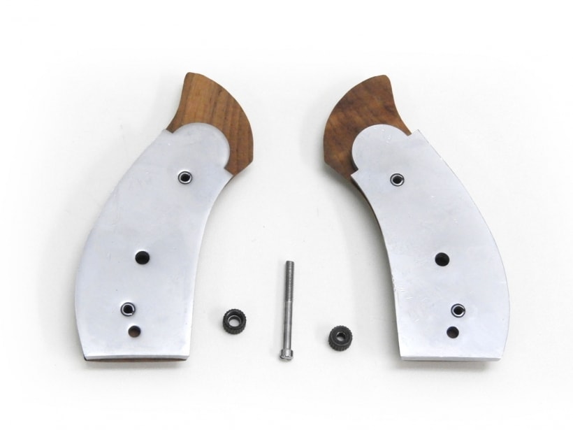 S&W Kフレーム用のスクエアバット、サービスサイズの木製グリップ。ウェイトを兼ねる金属パネル付き。