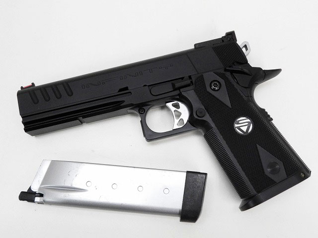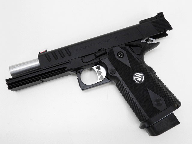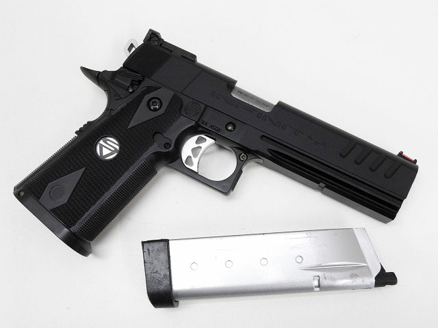 ハンドガンの場合は全体を金属性とする組み換え、エアソフトガンの場合は射出エネルギー0.98J以上にする改造を行うと銃刀法違反となります。HFC134a仕様のガスガンにCO2用マガジンを組み込む、スライドを金属製の物に差し替える等、簡易な改造でも罪に問われる可能性がございますので、絶対にお止めください。