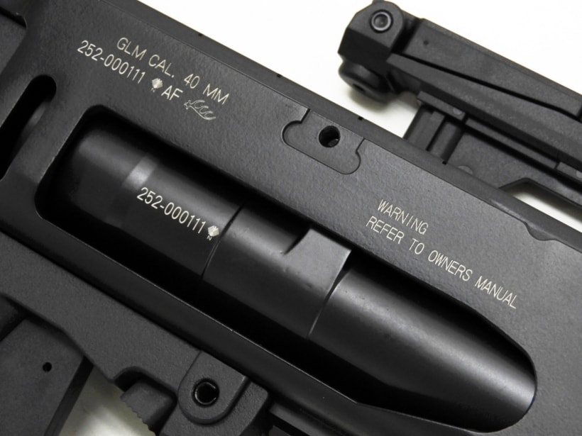 H&K社が開発、米軍がM203ランチャーの後継として採用したM320ランチャーを再現した製品。 各社の40mm径ガスカートリッジに対応。 ※カートリッジの外径、各部形状によっては使用出来ない場合あり。 バレルとフレームとストックのシャフトは金属製、グリップやバットプレートやサイトなどは樹脂製。 全長:約 350〜490mm 重量:約 1450g 単体での使用の他、部品を組み替えてM4カービンのレイルシステム等に取り付け可能。