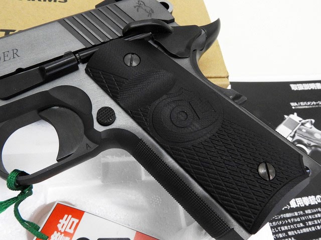 スライドとフレーム部材に独自のカーボンブラックヘビーウエイト材をふんだんに使用して特徴的なサイド2トーンのカラーリングを再現。コンパクト1911の最新作として登場したモデルです。