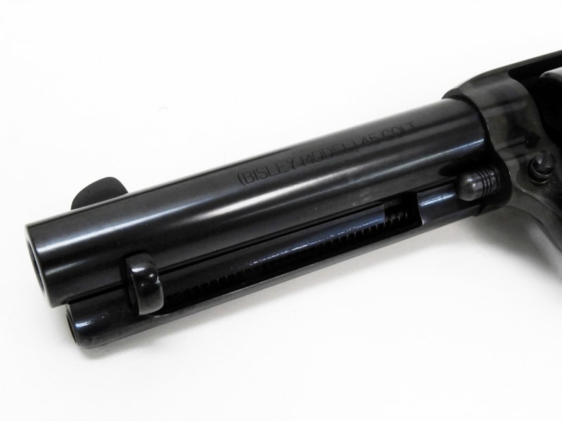 英国の射撃場“ビズリー”の名を冠した、コルトSAAのターゲット・モデル。『荒野の七人』や『グレイフォックス』などの西部劇に登場。射撃に適した猫背型の独特なフレームに、特徴的な形状のハンマーが目立つ。