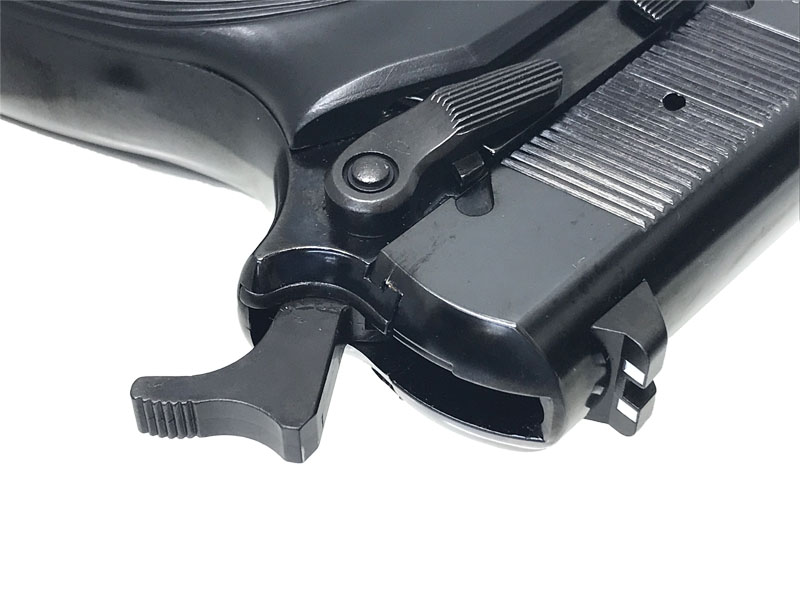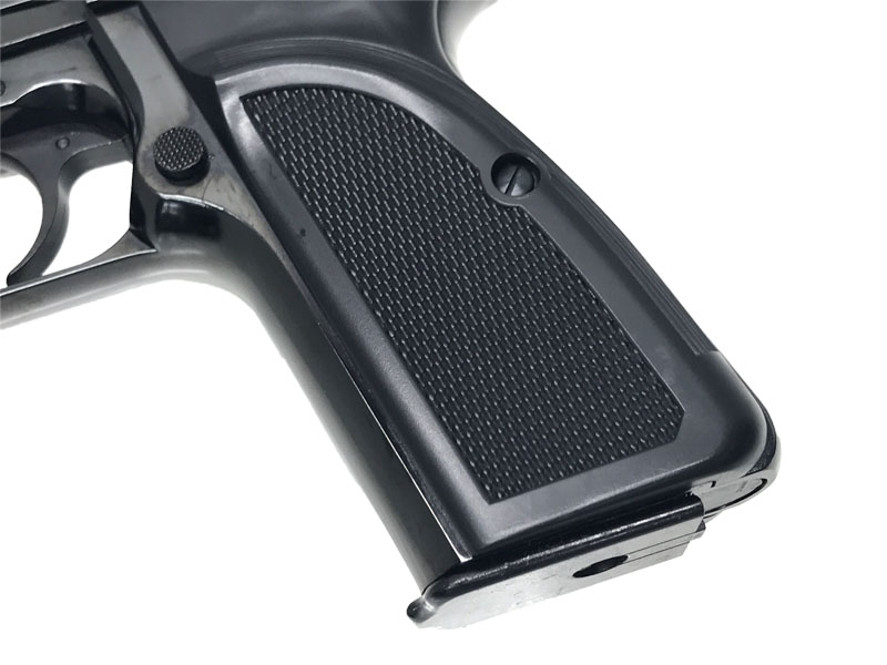 グリップは実銃どおり親指がくぼみにかかるデザインで握りやすい。ブローバックも申し分なくしっかりと動作する。