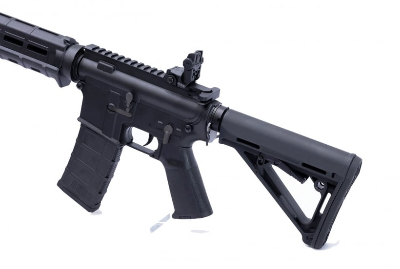 使い勝手の良いオーソドックスなデザインのAR15レシーバーに、バックストラップが交換可能なMIADタイプのカスタムグリップ、MOEタイプストック、そして軽量さと拡張性を兼ね備えたMOEタイプのナイロンハンドガードを搭載。