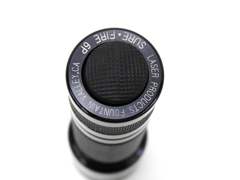 希少なLaserproduct時代モデルのSUREFIRE 6P。現代モデルと同じく深い滑り止めのローレットとスイッチのゴムが突き出した後期モデル。