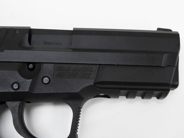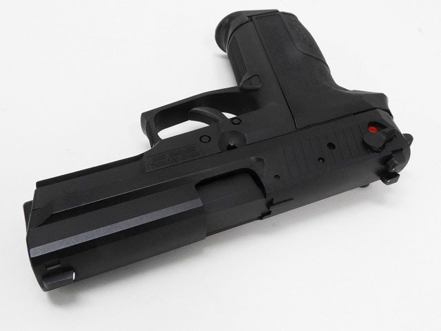 SIG PROは握った瞬間一体感を感じさせるような「塊」としてのフィーリングを感じさせる。動作のほうは最新ブローバックエンジン「システム7」が快調に動作する。フレームはHW素材、スライドがABS製となっており光沢がある仕上げ、フレームはきめ細かく、実銃の金属スライドとポリマーフレームの違いを表現している。