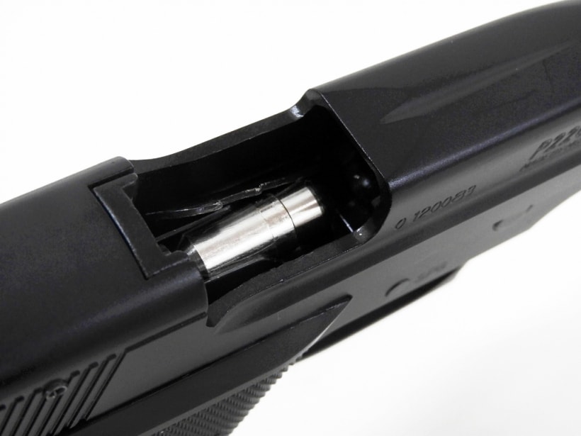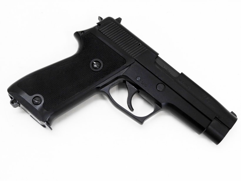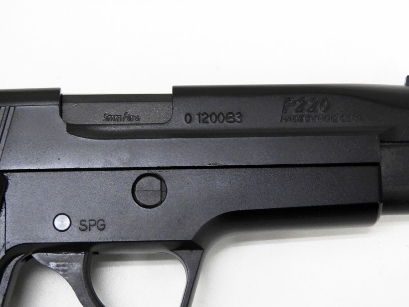 P220は、スイスのSIG社及び当時傘下(現在は独立)ドイツのザウエル&ゾーン社が1976年に共同開発した警察及び軍用の自動拳銃である。タイトー名義にて販売された、スーパーブラックHWモデル。標準でカートリッジ6発付属。