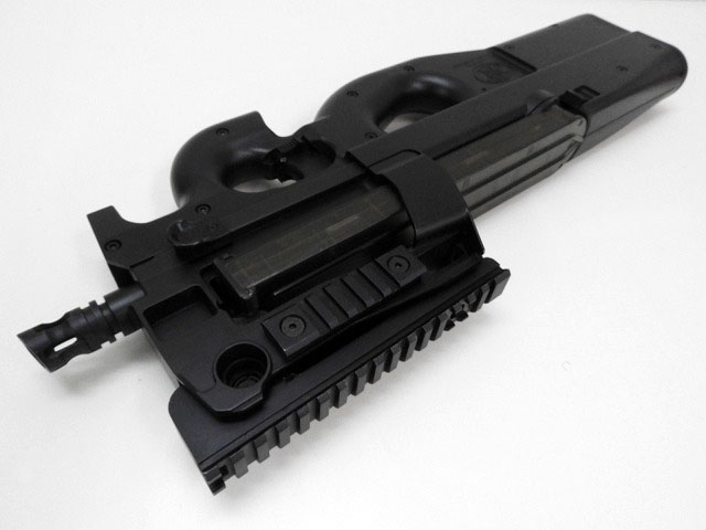 サイドの2面、トップに20mmレールが搭載され拡張性が確保されたP90。マガジン3本付き!
