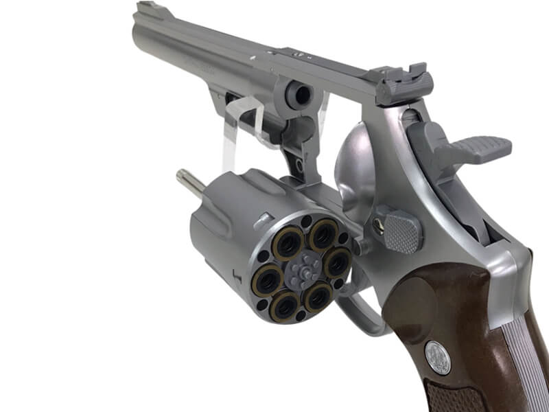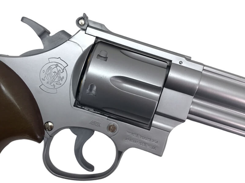 クラウン S&W M629。カートリッジ式でリアルなアクションが楽しめるエアーリボルバー。シリンダーのスイングアクションも可能!