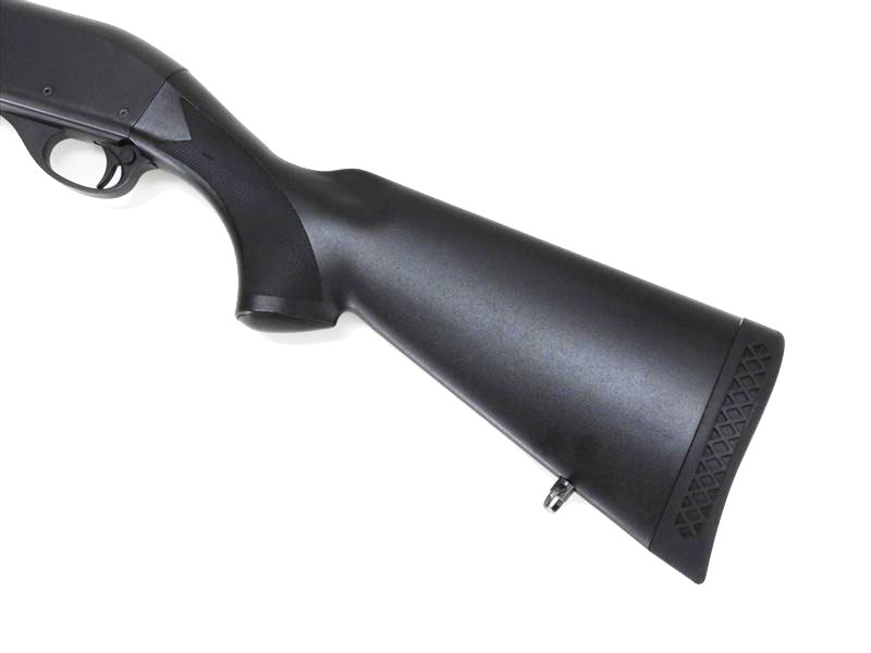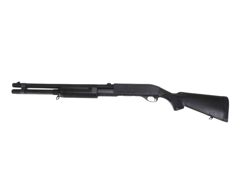 <実銃はこんな銃> レミントン・アームズ社が開発したポンプアクション式散弾銃。同社M31の後継として1960年代中期に開発された。堅牢な構造で耐久性が高いことが特長で、民間での狩猟用としての他に各国の警察や軍隊でも広く採用されている。日本では陸上自衛隊の特殊作戦群や警察の刑事部特殊班、海上保安庁の特別警備隊などで使用され、狩猟用としても数多く流通している。