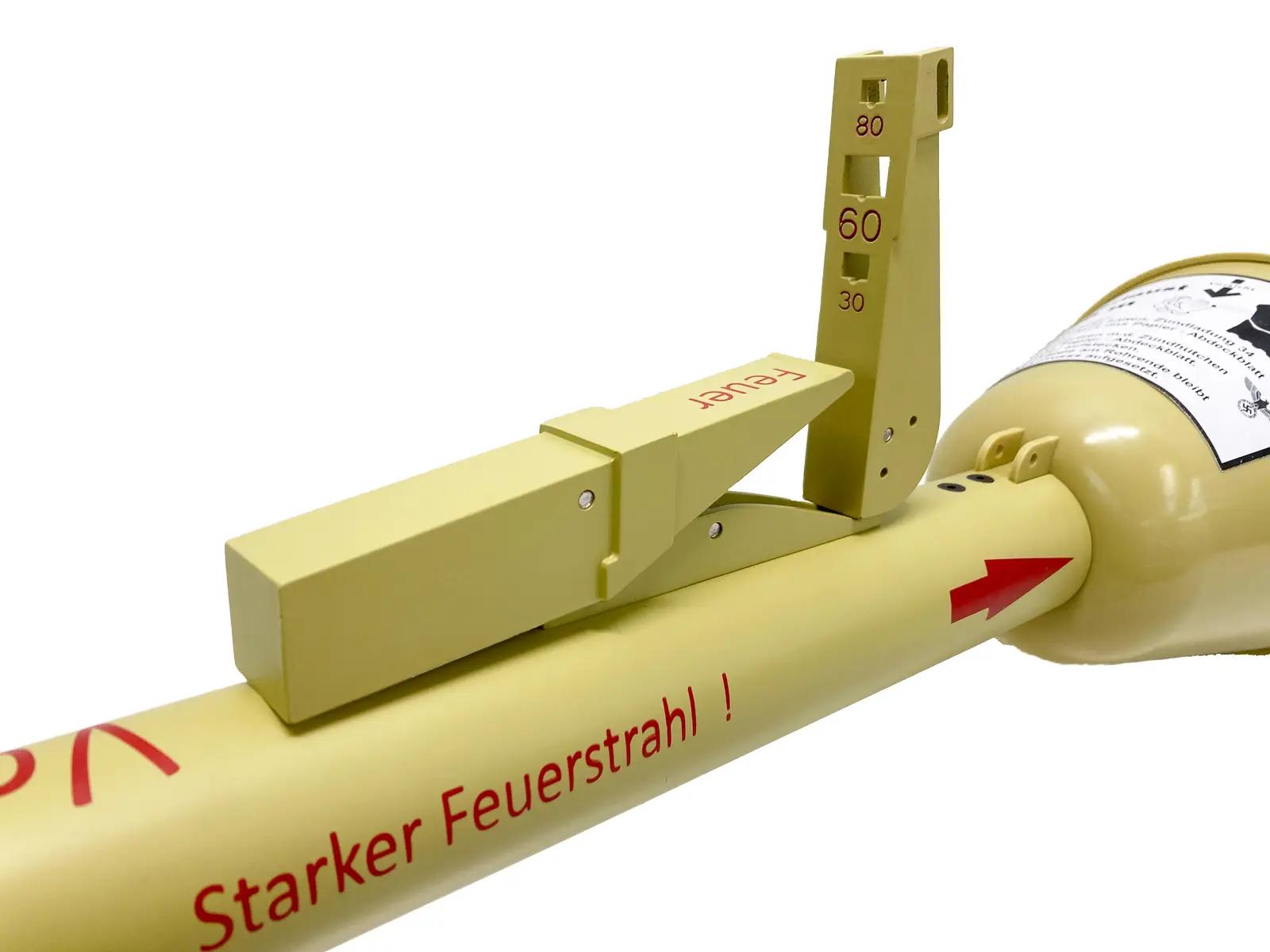 弾頭部に各社製40mmガスカートをセットし、単発式ランチャーとして使用することが可能。ドイツ語表記の各部マーキングはもちろん、安全ピンを外して安全装置兼用のフロントサイトを起こした後、発射レバーを押して射撃を行う実物のギミックも忠実に再現!WWII再現行事系サバイバルゲームのお供にも最適。