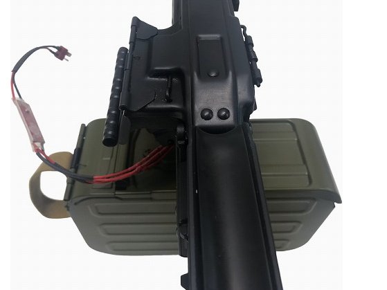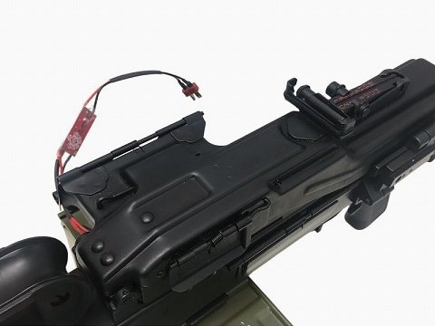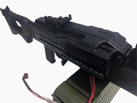 内部は安定した実射性能を誇るLCT製ギアボックスを搭載。ベルトリンク式7.62×54R箱型マガジンを模したボックスマガジンにより圧倒的な火力を発揮させることができます。
