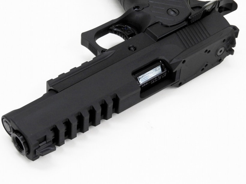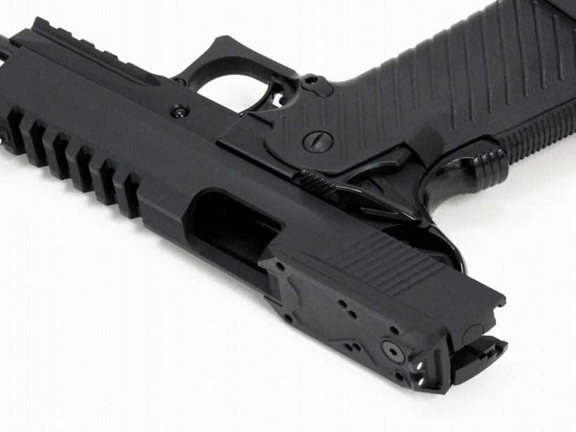 ジャパンバージョンはスライドが樹脂製となり、フロントサイト/リアサイトともに蓄光ドット入りのナイトサイト仕様。リアサイトベースにはRMRやDOCTERといったマイクロドットサイトのダイレクトマウントも可能。