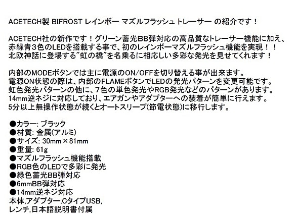 [ACETECH] BIRSOFT レインボーマズルフラッシュ トレーサー (新品) 製品詳細画像2