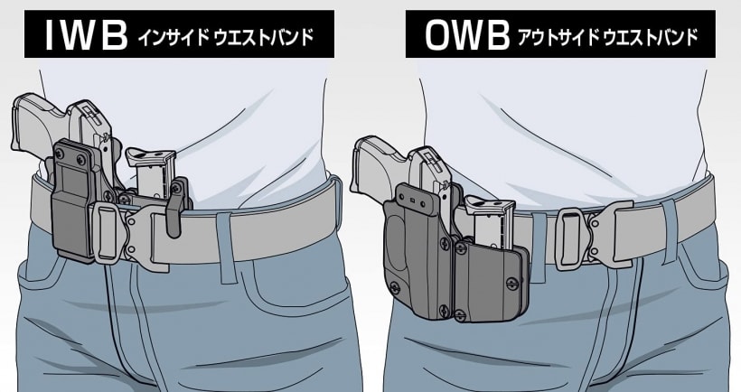 【コンシールドキャリーに最適】張り出しが少なく秘匿性に優れたIWB (インサイドウエストバンド)、体への接触が少なく操作性の良いOWB (アウトサイドウエストバンド)に両対応。また、組替えによって右利き、左利きにも対応します。