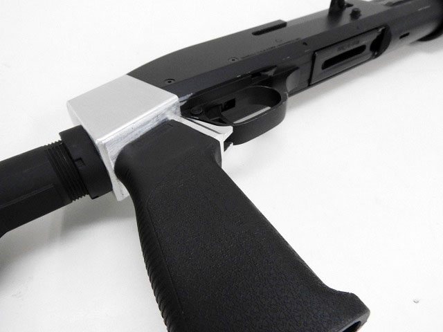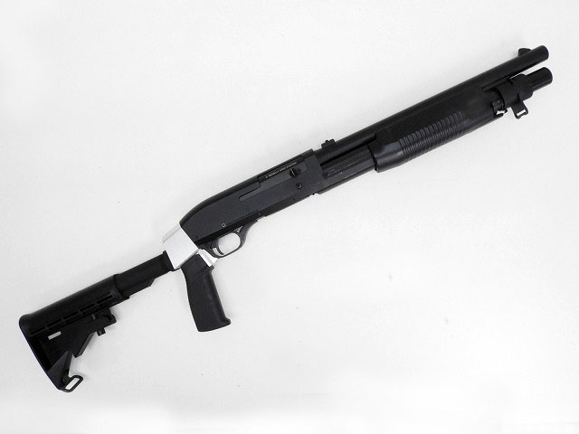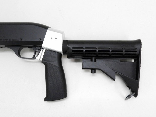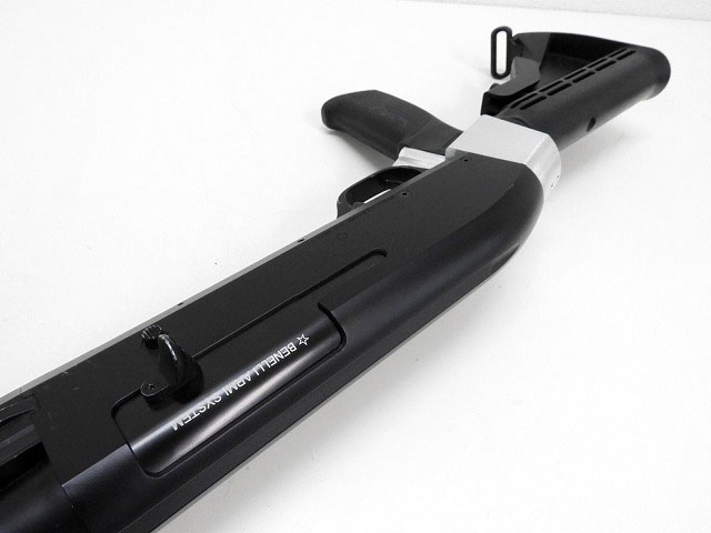ベネリ刻印 フルメタルショットガン。M4ストック取り付けカスタム。