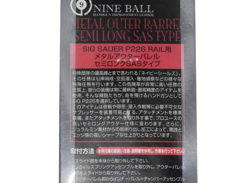 [LayLax] NINE BALL東京マルイ SIG SAUER P226 RAIL用 メタルアウターバレル&SAS(セミロングタイプ) (中古)の販売ページ|エアガン.jp