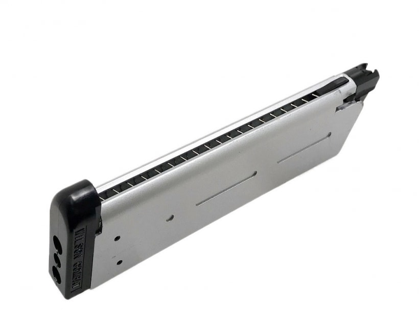 ハンドガンの場合は全体を金属性とする組み換え、エアソフトガンの場合は射出エネルギー0.98J以上にする改造を行うと銃刀法違反となります。HFC134a仕様のガスガンにCO2用マガジンを組み込む、スライドを金属製の物に差し替える等、簡易な改造でも罪に問われる可能性がございますので、絶対にお止めください。