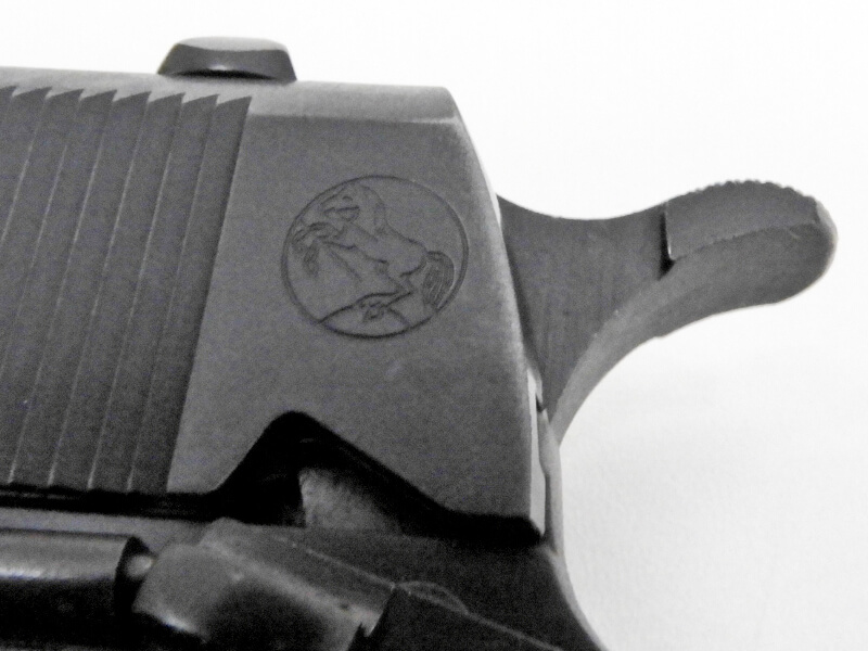 [WA] コルト M1911 コマーシャル ミーリング・カスタム (中古) 製品詳細画像6 セレーション後部の馬もくっきり