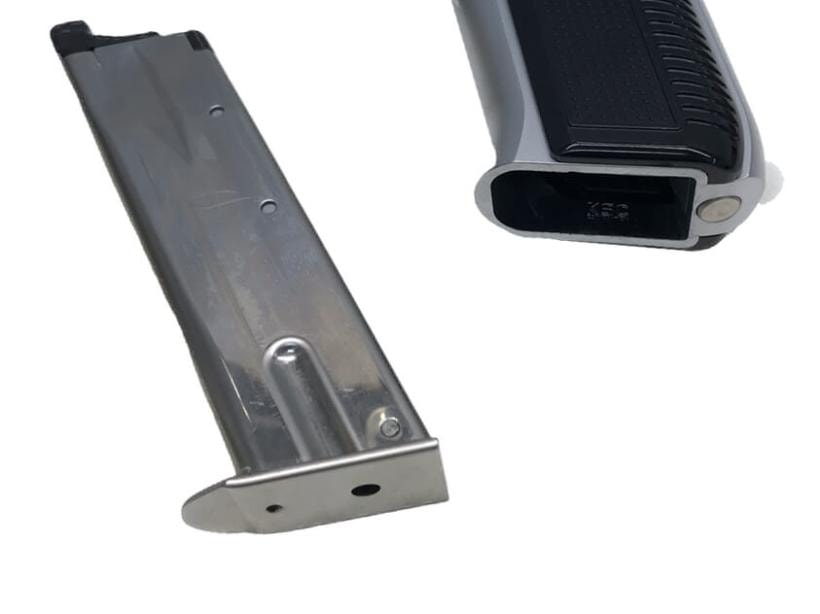 ハンドガンの場合は全体を金属性とする組み換え、エアソフトガンの場合は射出エネルギー0.98J以上にする改造を行うと銃刀法違反となります。HFC134a仕様のガスガンにCO2用マガジンを組み込む、スライドを金属製の物に差し替える等、簡易な改造でも罪に問われる可能性がございますので、絶対にお止めください。
