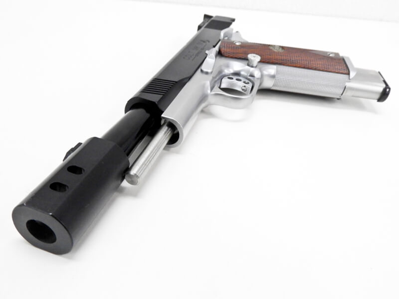 アメリカ・アーカンソー州で時計宝石店を営んでいたあったビル・ウィルソン氏が本業の傍ら始めた、1974年の創業の小さな銃砲店「Wilson’s Gun Shop」を前身とする、ウィルソン・コンバット社によってカスタマイズされたカスタムM1911。同社はM1911のパテントが切れた後は本体製作にも手を広げ、現在でも45口径ピストルを求めるデルタフォースやSEALsにM1911タイプを納品しているという。
