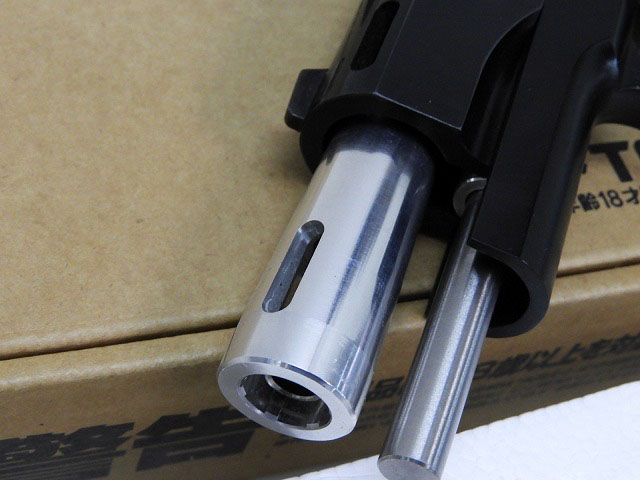ハンドガンの場合は全体を金属性とする組み換え、エアソフトガンの場合は射出エネルギー0.98J以上にする改造を行うと銃刀法違反となります。HFC134a仕様のガスガンにCO2用マガジンを組み込む、スライドを金属製の物に差し替える等、簡易な改造でも罪に問われる可能性がございますので、絶対にお止めください。