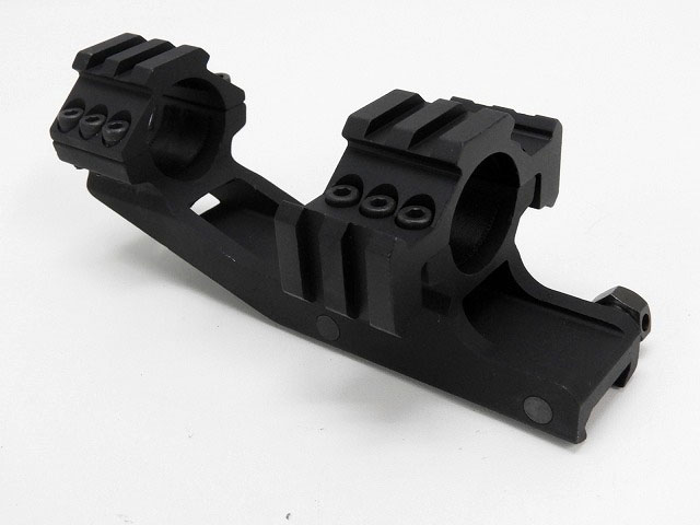 25.4mm径マウントリング一体型のタクティカルスコープマウントベース。サイドにレイル付き。ネジは片側3個のタイプ。