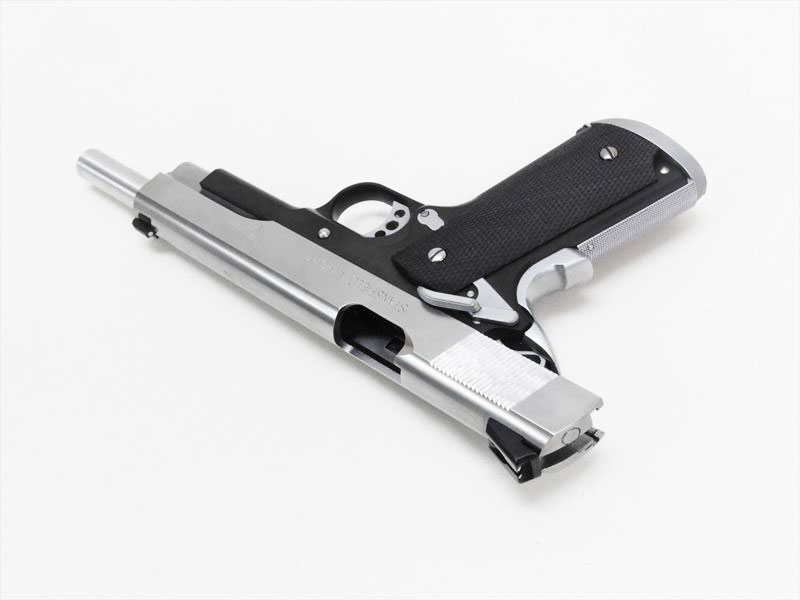 ロングスライドモデル。ブラックのカラーにハンマーやトリガー、セフティ、マガジンバンパー、バレルなどがシルバーとなっているスペシャルIIモデルです。