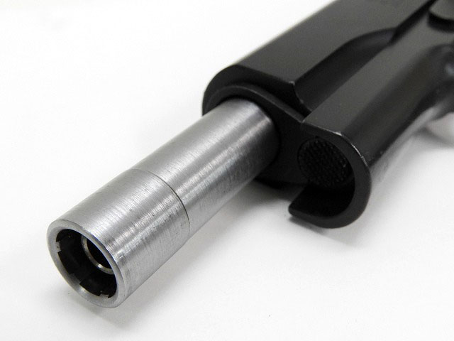 ハンドガンの場合は全体を金属性とする組み換え、エアソフトガンの場合は射出エネルギー0.98J以上にする改造を行うと銃刀法違反となります。HFC134a仕様のガスガンにCO2用マガジンを組み込む、スライドを金属製の物に差し替える等、簡易な改造でも罪に問われる可能性がございますので、絶対にお止めください。
