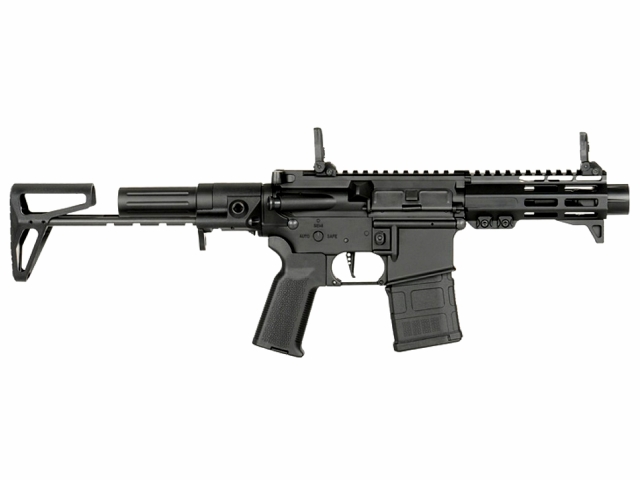 PDWストックと マグプルMOE-K2タイプグリップを標準装備。レシーバー、レイルハンドガード、アウターバレルと主要パーツは全て高剛性なメタル製となっている。