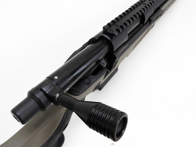 [ACTION ARMY] AAC T10/Tactical 10 FDE ボルトアクションライフル スコープ/バイポッドフルセット (中古) 製品詳細画像2 大型金属製ハイダー取り付け