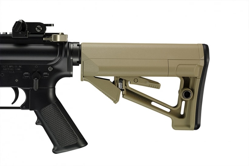 ストックの長さを6段階に調整可能なSTRタイプストックを新規製作。ストックには、SOPMODバッテリーがセット可能です。