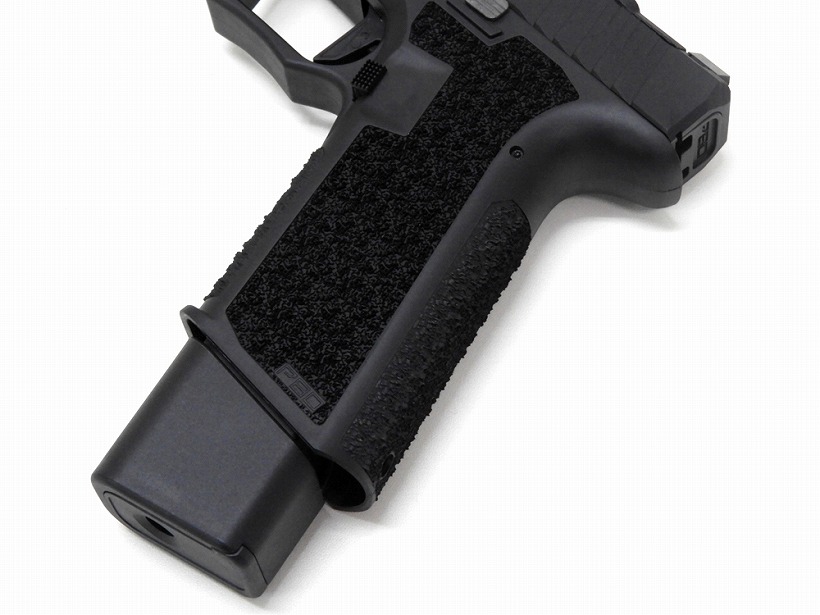 2007年に米国内でグロックのパテントが失効したことに伴い、複数のメーカーがクローンモデルのリリースを開始したが、中でもグロック17 Gen.3用の80%完成済みのコンバージョンフレームキット『PF45』で話題となったPOLYMER80社がコンプリートガンとしてリリースしたのが『P80 PFS9』。グロックオリジナルとパーツや消耗品の互換性を維持しつつ、コントロール系のデザインを大幅にアレンジすることで操作性が大きく向上、特にグリップアングルを米国で最も人気といえる大型オートピストルと言えるM1911/ガバメント系に近づけているのが特徴である。