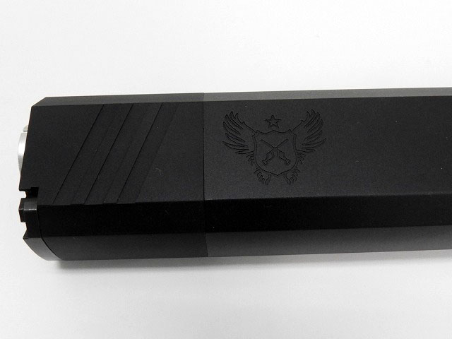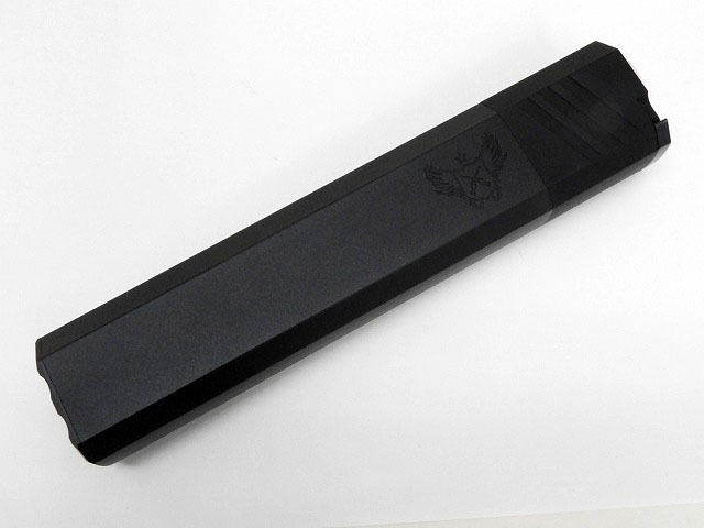 Silencerco. Ospreyタイプ サイレンサーをリアルに再現!8インチブラック。 ・アルミ削り出し ・14mm正ネジ仕様 ※別売りパーツを使用する事で14mm逆ネジ/16mm正ネジに変換も可能。