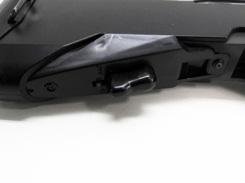 見た目はかなり大きな銃に見えるが全長は757mmとコンパクトなものだ。実銃ではM16のマガジンが共用できるようだが、残念ながらエアガンでは不可である。連射サイクルはギヤ比が高く設定されているのでフルオートの回転は速い。実銃同様ブルパップタイプなのでマガジンの交換などは慣れが必要だが、その分バレルの長さがあるので弾道が非常に安定しているのが特徴だ。