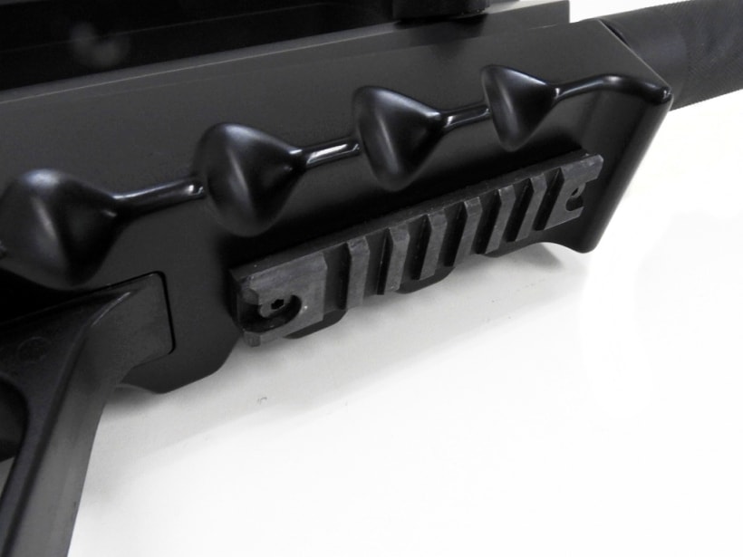 ポートカバー/マガジンが欠品しておりますがハンドガードにアンダーレイル搭載でグリップなどを装着しより安定した射撃ができる。