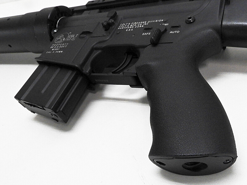 グリップはERGOタイプのレプリカ。元の物も付属。マガジンは多弾タイプ。