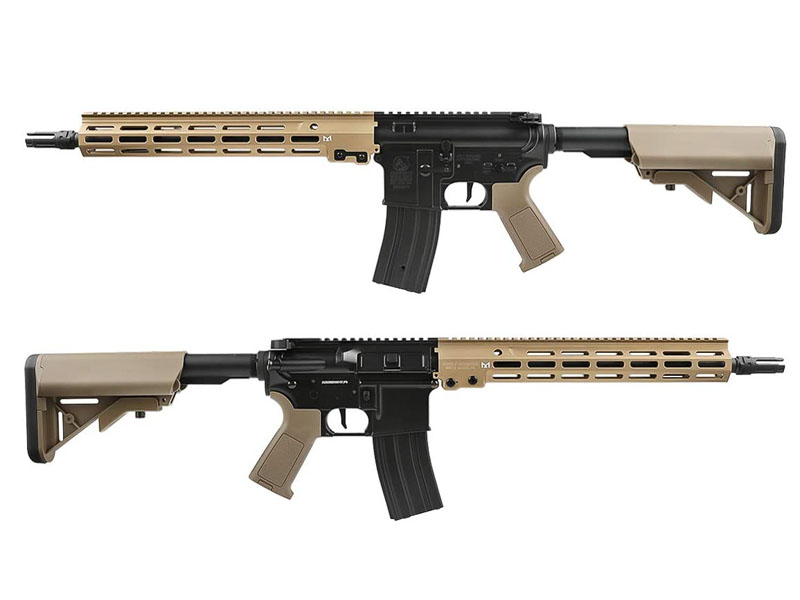 最新鋭ハンドガード、 ガイズリー SMR (Super Modular Rail) MK16 14.5inchタイプハンドガードが搭載されたM4カービン。 USASOC(アメリカ陸軍特殊部隊)が試験的に運用・開発を進めている14.5inchタイプとなっています。