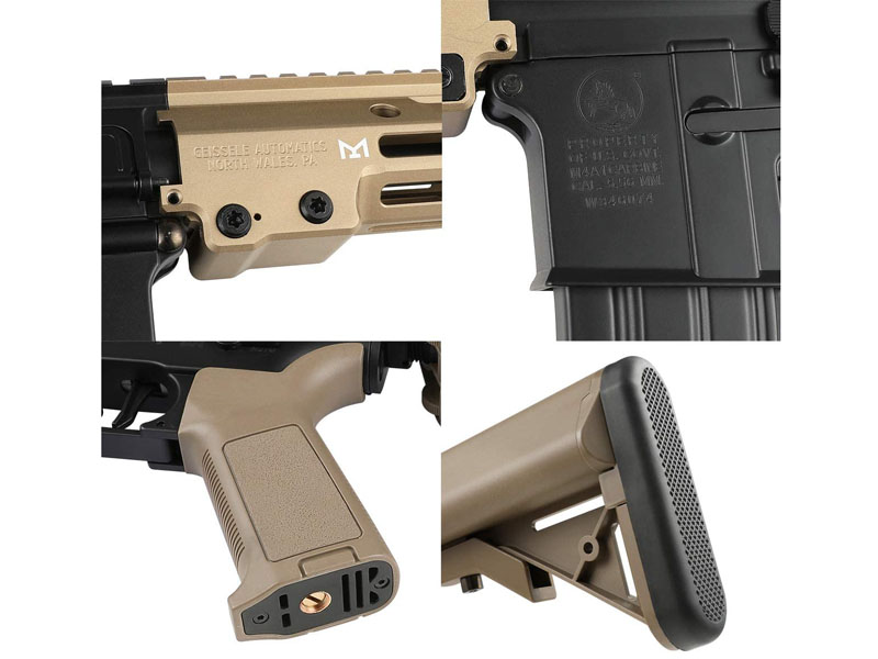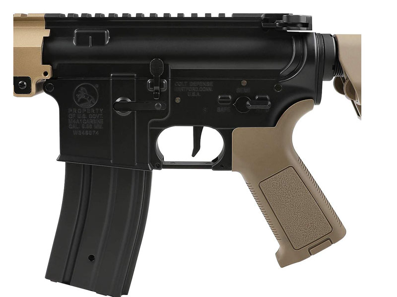 ミリタリー仕様ながらモダンスタイルのアクセサリーパーツも採用。 ピストルグリップにはスタンダードAR15/M4サイズに最適なマグプルMOEタイプを採用。 エルゴノミクスに優れた形状とアンチスリップデザインにより、コントロール性の効果的な向上を図ることができます。 チャージングハンドルはアンビ仕様となっており、利き手を選ばない快適な操作が実現しています。