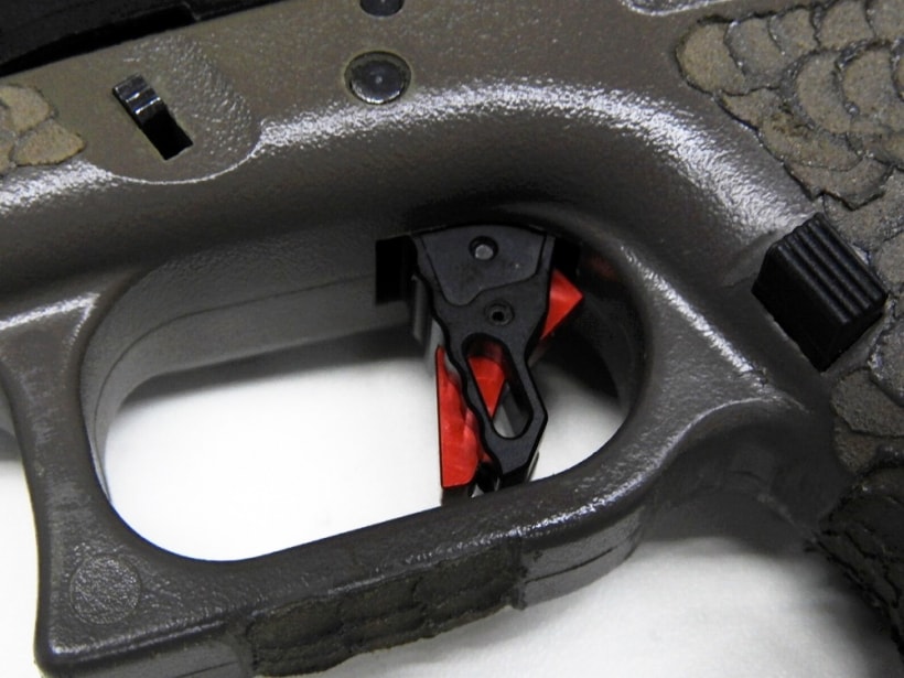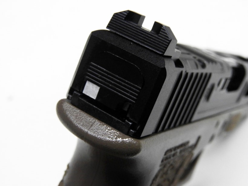 スライドストップやトリガーなど細かなパーツもカスタムされており実銃にも引けを取らないカスタムグロックに仕上がっている。