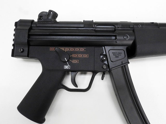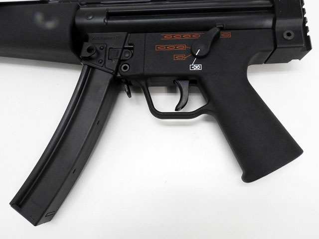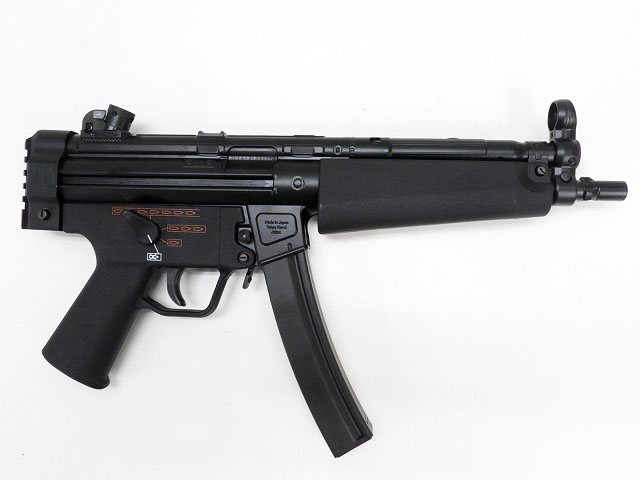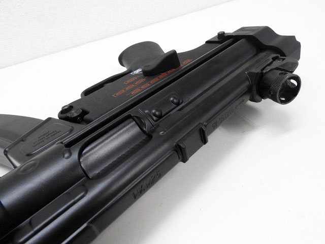 「次世代電動ガン MP5A5」の重量は3.1kg、実銃と変わらない重さとなっている。実銃採寸により、デザインなども可能な限り再現。アッパーフレームは亜鉛ダイキャスト。ハンドガード、ロアフレーム、バッドプレート、セレクター、コッキングハンドルは、強化ナイロン樹脂。