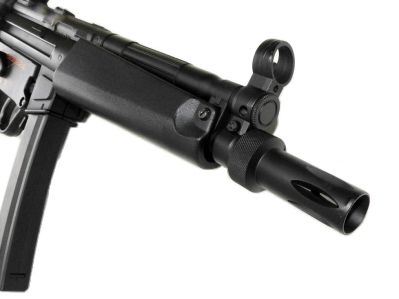 H&K社が1960年代に、同社のG3(HK31)のシステムを短機関銃へと移植した物。 ローラーロッキングシステムを採用したために当時の面制圧目的な短機関銃とは一線を画す、目標に『当てる』事ができる命中精度を持っており、特にセミオート射撃では拳銃を上回る性能を持つ。 しかし難点として部品点数が多く、整備性や信頼性に不安があり高価であったため、発売当初H&K社は大口の取引先となるドイツ軍への納入を断念。それに替わる納入先としての西ドイツ警察や国境警備隊に配備されたり、ごく少数が輸出されていたに過ぎなかった。 永らく日の当らぬ存在であったが、契機となったのは1977年のルフトハンザ機ハイジャック事件である。MP5を装備したドイツのGSG9が事件を解決したことで一躍有名になり、続く1980年のイラン大使館占拠事件でこのMP5を装備するイギリスSASの映像が世界に公開され、その地位を不動の物とした。現在、このMP5は世界各国の軍・警察で採用され、SWATや抗テロ部隊では標準的な突入用火器として使用されており、日本でも90年代の終わり頃、海保の特殊部隊であるSSTがA5を、2002年のFIFAワールドカップの日韓同時開催に伴う警備強化を機に、警察庁がMP5Fをベースにした独自モデル(フラッシュハイダーを装備し、強装弾に対応。俗称 MP5J)が導入されている。
