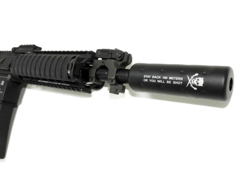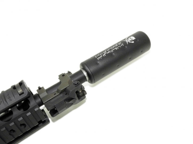 レシーバーは金属製であり、バレルにはショートサイレンサーが装着されている。