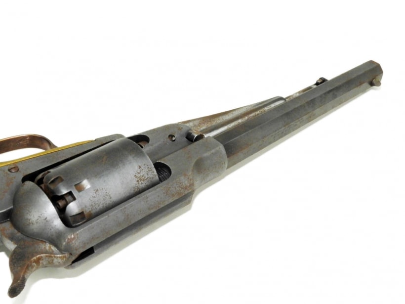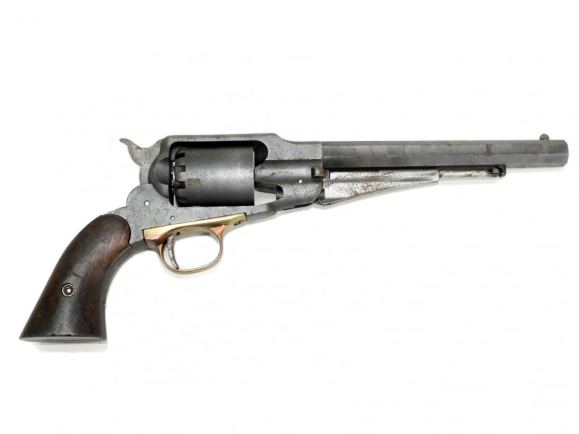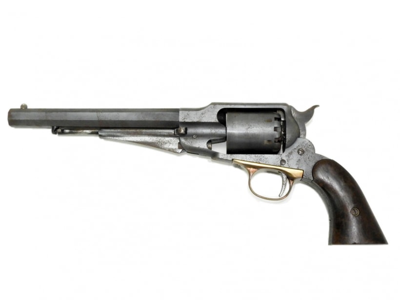 M1858は1860年から1875年まで、アメリカのレミントン・アームズ社で製造され、南北戦争で活躍したシングルアクション・パーカッション・リボルバー。耐久性に優れ、素早いリロードが可能だったことから、当時の合衆国陸軍で余裕のある者は、支給されていたコルトアーミーよりも好んで本銃を手にした。西部劇をはじめとしてスクリーンの中でも活躍し、およそ150年を経た現在も、イタリア製のレプリカモデルが製造され、カウボーイシューティングなどで人気の拳銃となっている。コルトのパーカッションリボルバーは前後に分解可能であったが、レミントンのM1858は、シリンダーをまたぐトップストラップによって、銃身からフレームまでを一体とした堅牢なソリッドフレームを構成、優れた耐久性と精度を有していた。また、銃身下のローディングレバーを引き倒すだけで簡単にシリンダーを外すことができたため、弾薬を装填済みのスペアシリンダーを携帯しておけば、再装填も容易かつ迅速に行えた。また、シリンダーのニップルにセイフティスロットが彫られ、シリンダーがフル装填のままでも安全に携行することができた。当時、銃器の安全措置は、今と比べるとかなりお粗末なもので、レミントン・リボルバーのこの安全装置は、シンプルではあったが、かなり革新的なものだった。M1858には3段階のモデルがある。極初期の「レミントン・ビールス・リボルバー」、改良された「“オールドモデル”アーミー(&ネイビー)」、そして最もよく知られ、また最も多く生産された「“ニューモデル”アーミー(&ネイビー)」である。なお、M1858の名は、本銃の元となったフォーダイス・ビールス氏の設計が特許を取得した年に由来する。また、1868年には、スミス&ウェッソンが開発した金属薬莢式の弾丸を使用可能にした、コンバージョンモデルが登場している。