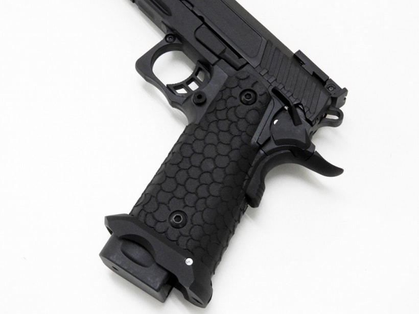 そしてグリップ表面のドラゴンテクスチャー風モールドはCo2GBBの強烈なリコイルにも耐えるグリッピングを可能とする。
