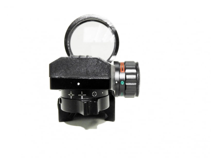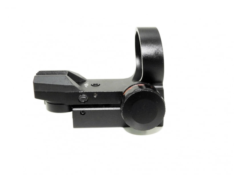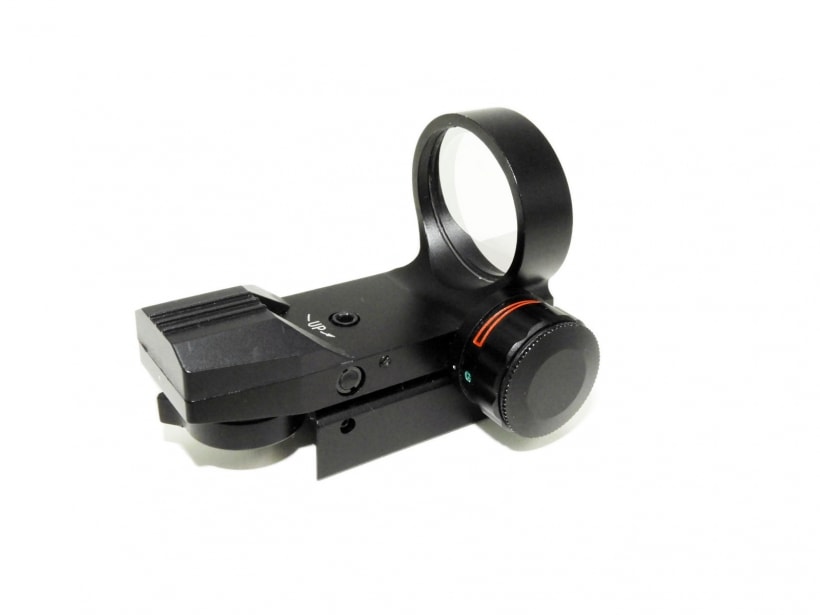 4種類のレティクルを切り替えられる、オープンタイプダットサイト。レッド&グリーンの無段階輝度調整が可能。