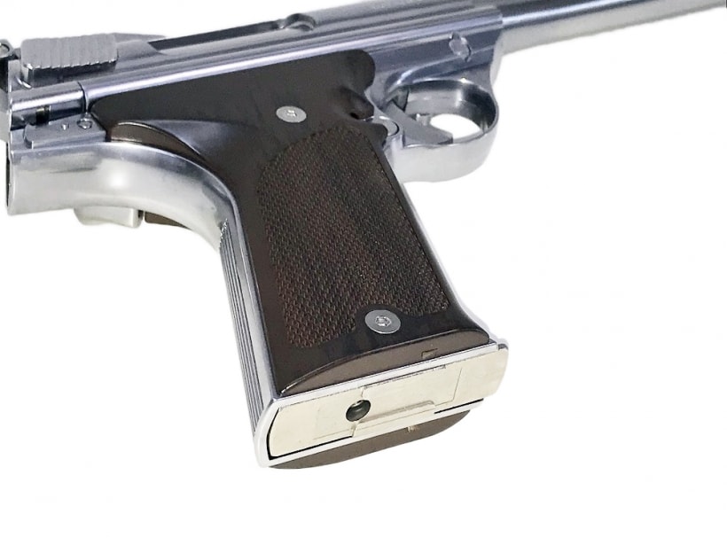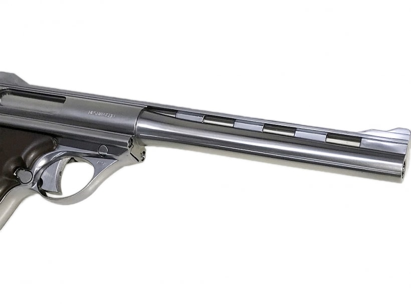 強力な44マグナム弾を使用する、オートマチックピストルの先駆けとなったオートマグが、MAXI8シリーズで登場『ダーティーハリー4』で有名になったロングバレルバージョン。物語に負けることのない迫力を実現!!アルミケースに入った限定モデル!!