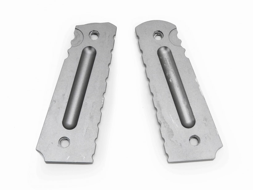 M1911/ガバメント用グリップパネル。総金属製だが片側44gと軽量タイプ。